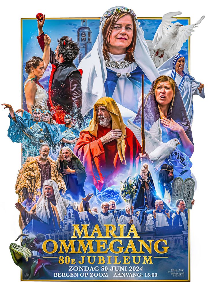 We zijn enorm trots om onze prachtige poster, met een uniek en sfeervol ontwerp voor de 80e Maria Ommegang op 30 juni te onthullen! Wij zijn ontzettend blij met deze indrukwekkende collage die de veelzijdigheid en de diepe betekenis van de Maria Ommegang weerspiegelt.