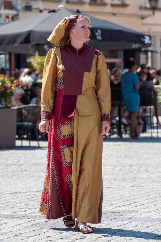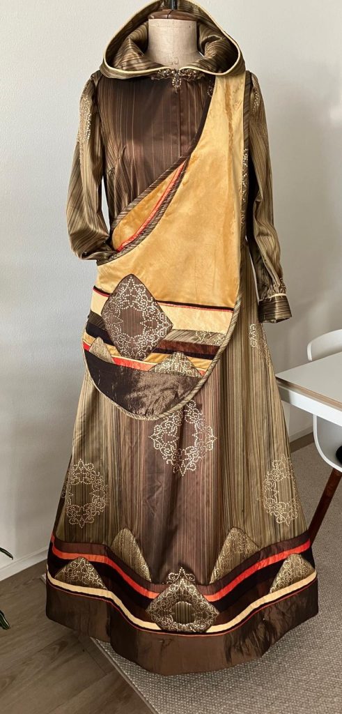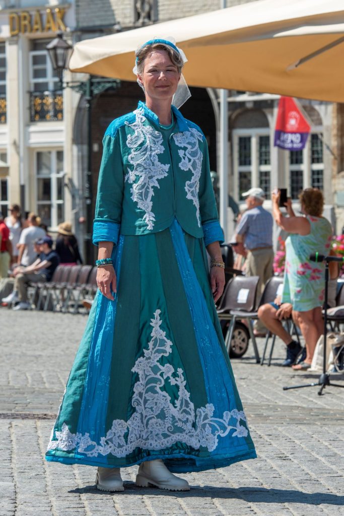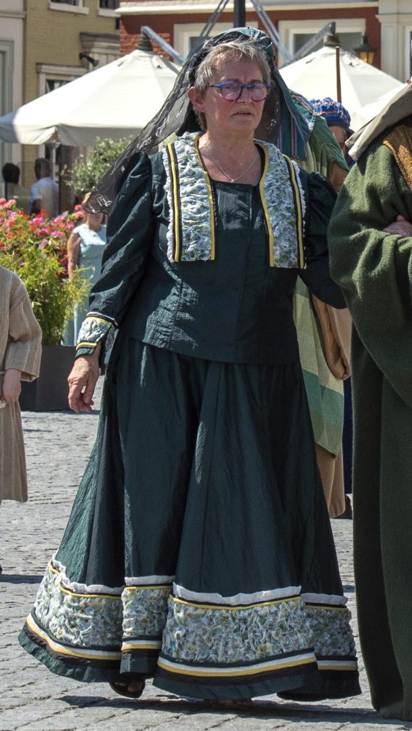 De jurken die deze sterke vrouwen dragen zijn ontworpen en gemaakt door Els Vallen met medewerking van de kledingmaakgroep van de Maria Ommegang.